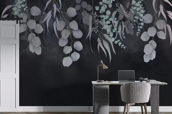 Fototapet Tropiska blad på mörkblå bakgrund, blommigt w03752v2
