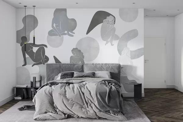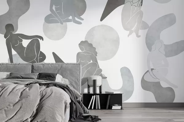 Fototapet Geometriska abstraktioner med kvinnliga silhuetter, boho-stil, grå färger Nr. w03753v5