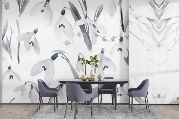Fototapet Snödroppar blommor i akvarellstil, grå färger Nr. w03754v1