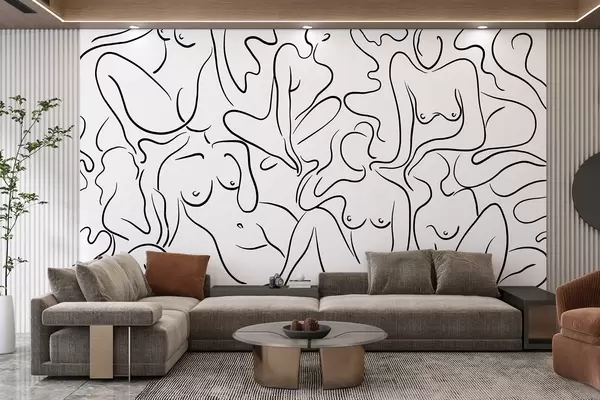 Fototapet Linjeteckning av silhuetter av kvinnokroppar, abstraktion, svart färg Nr. w03755