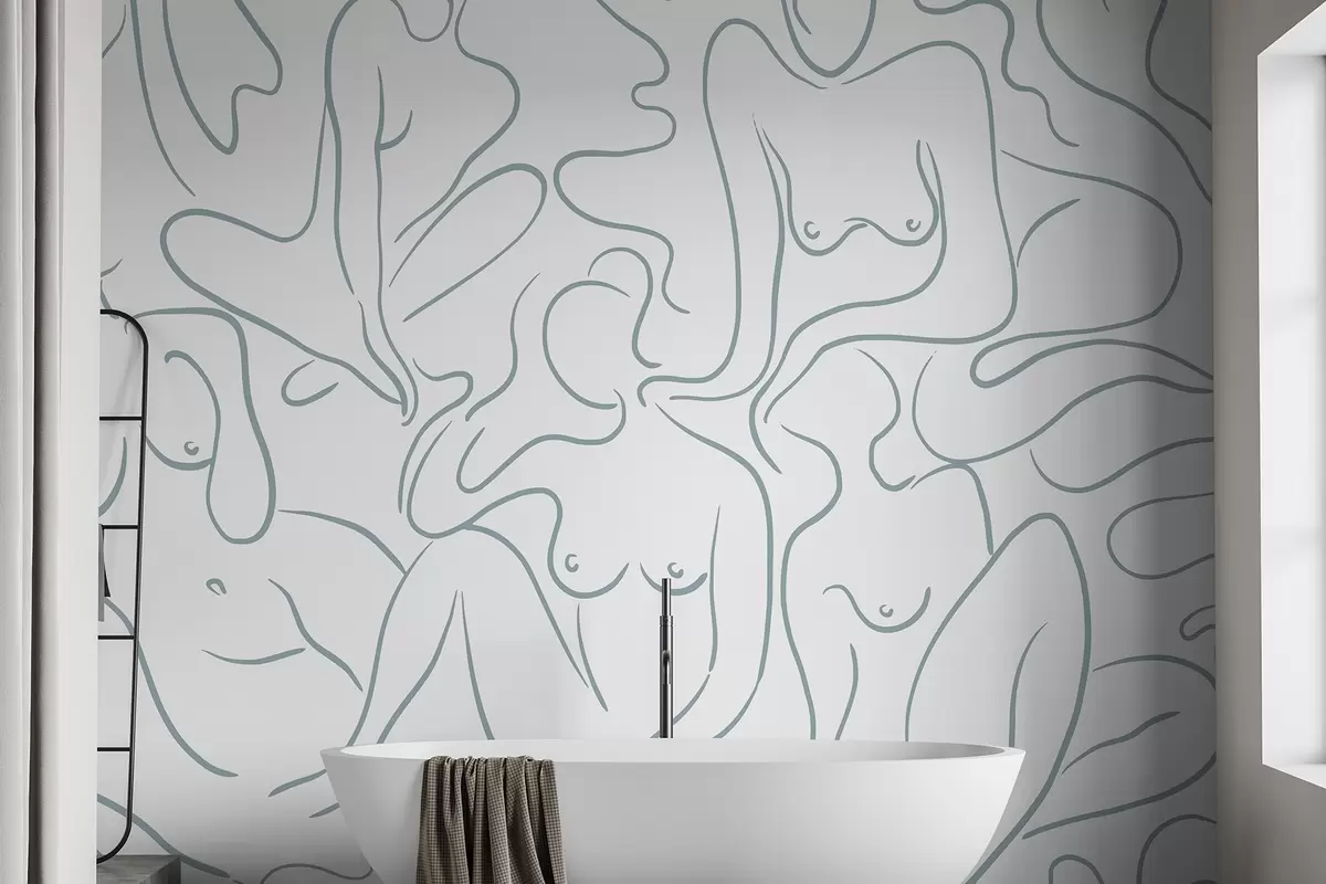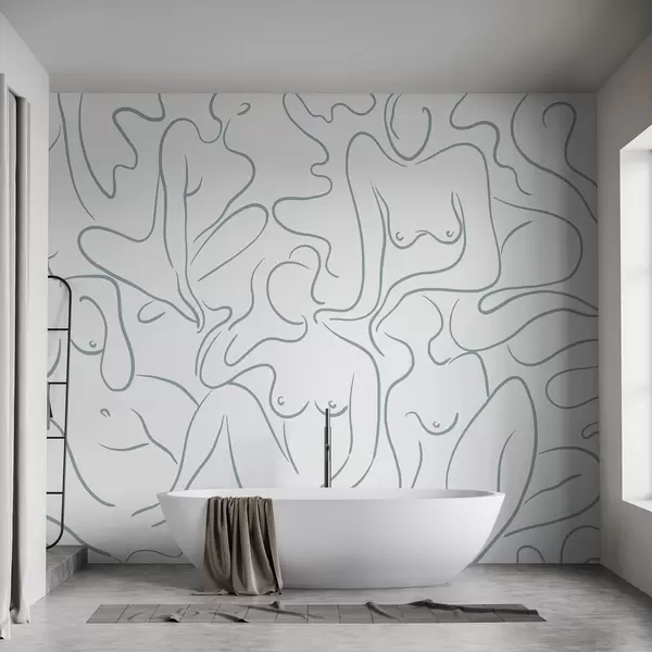 Fototapet Linjeteckning anatomiska silhuetter, abstraktion, blå färg Nr. w03755v1