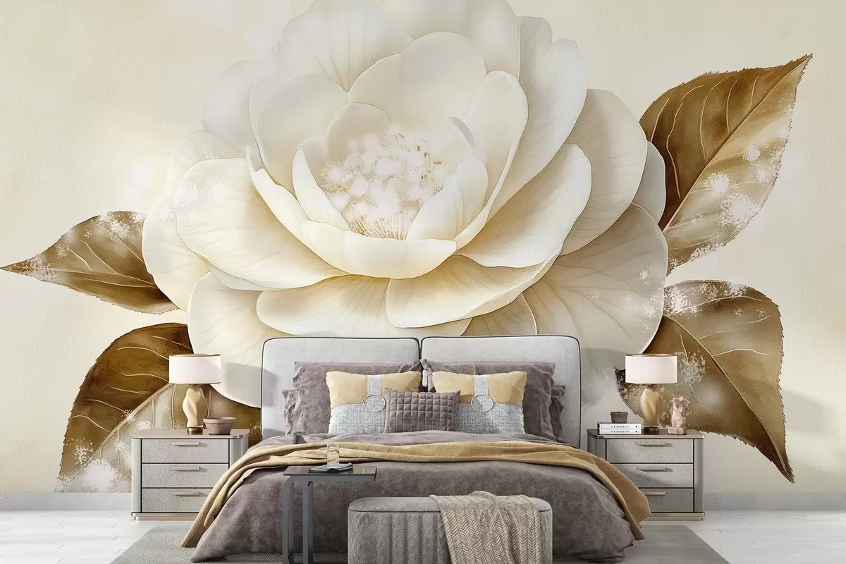 Fototapet Vacker pionblomma i beige färger Nr. w03757