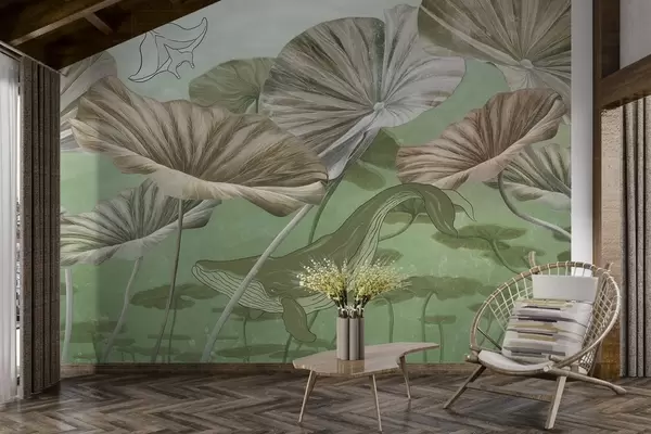 Fototapet Val bland gigantiska lotusblommor i grönt vatten Nr. w03807