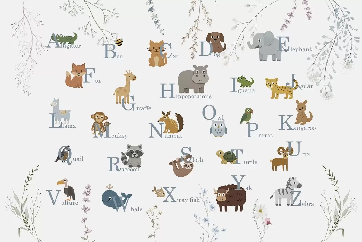 Fototapet Minimalistiskt alfabet med blå bokstäver Nr. w03808
