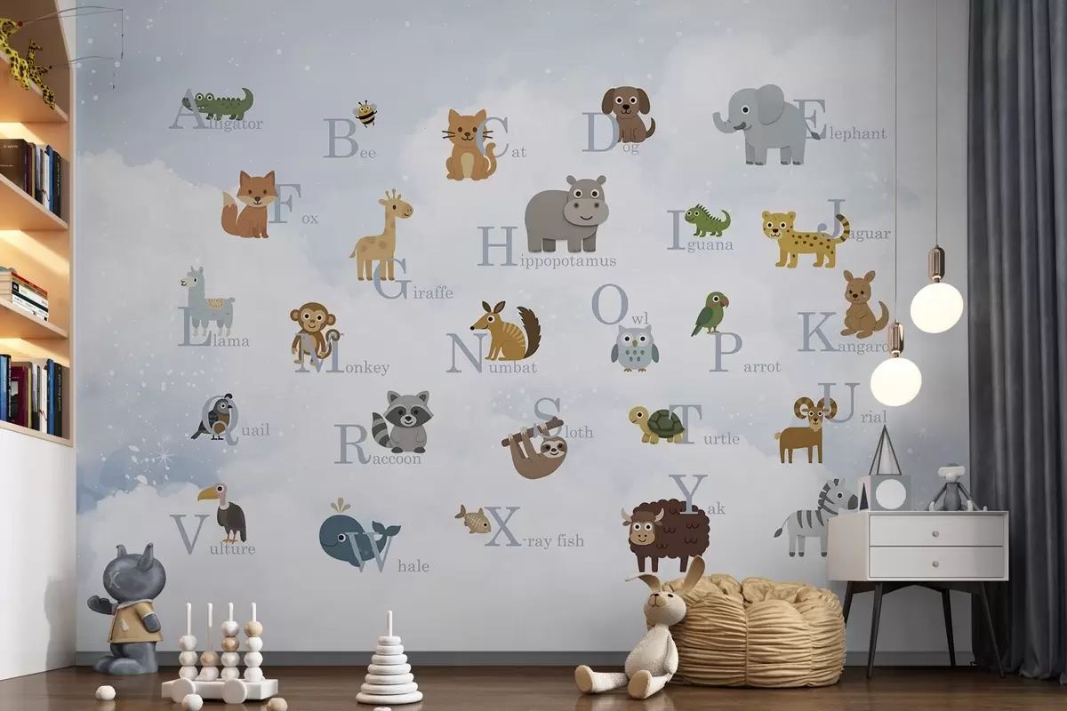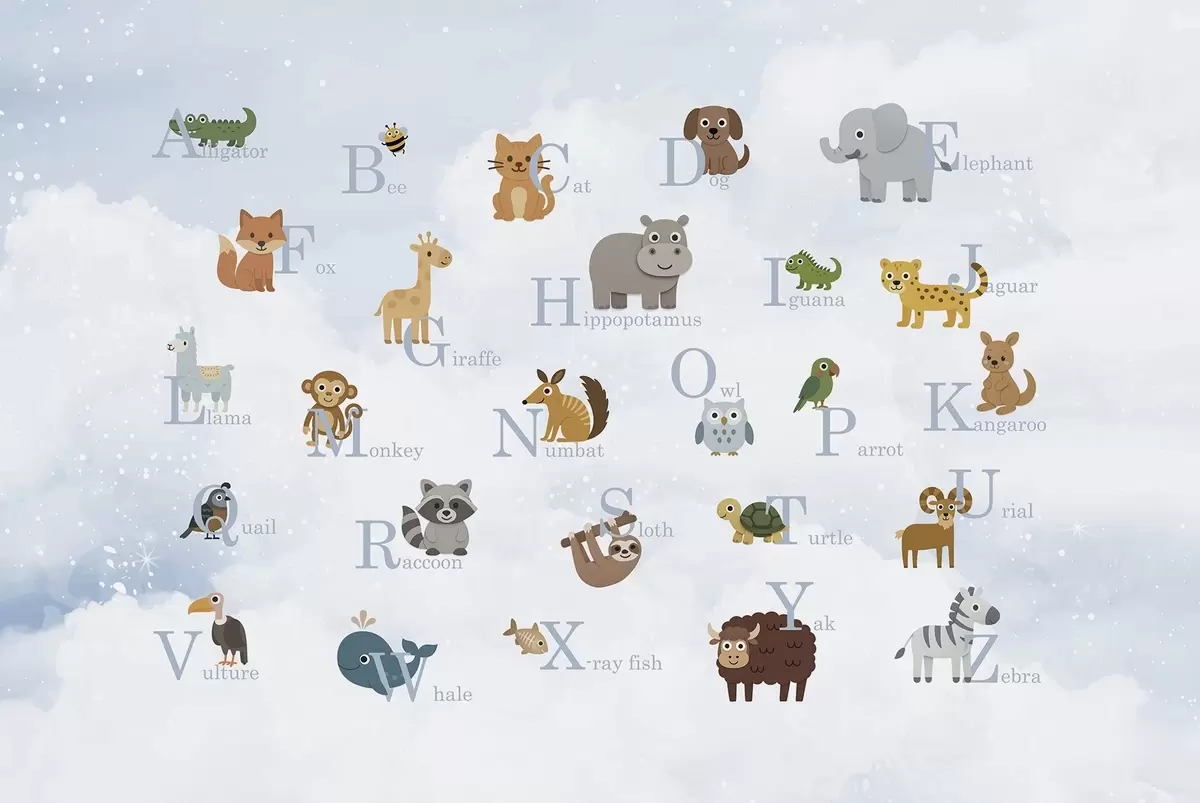 Fototapet Alfabet med blå bokstäver på himmelbakgrund Nr. w03810v1
