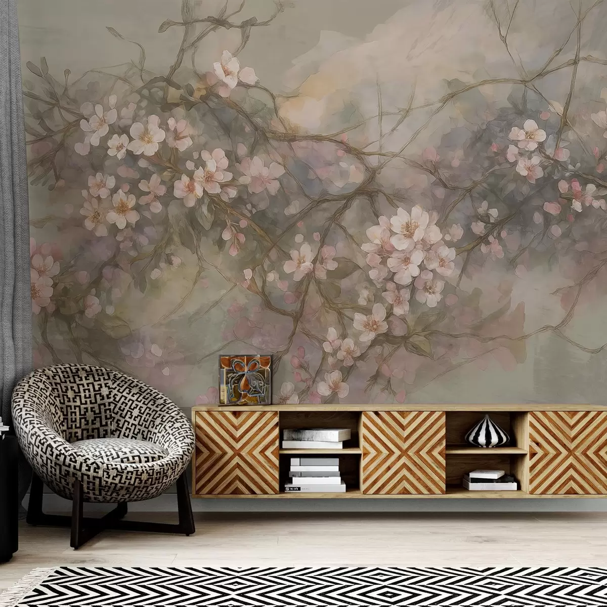 Fototapet Abstrakta grenar med blommor i akvarell Nr. w03815