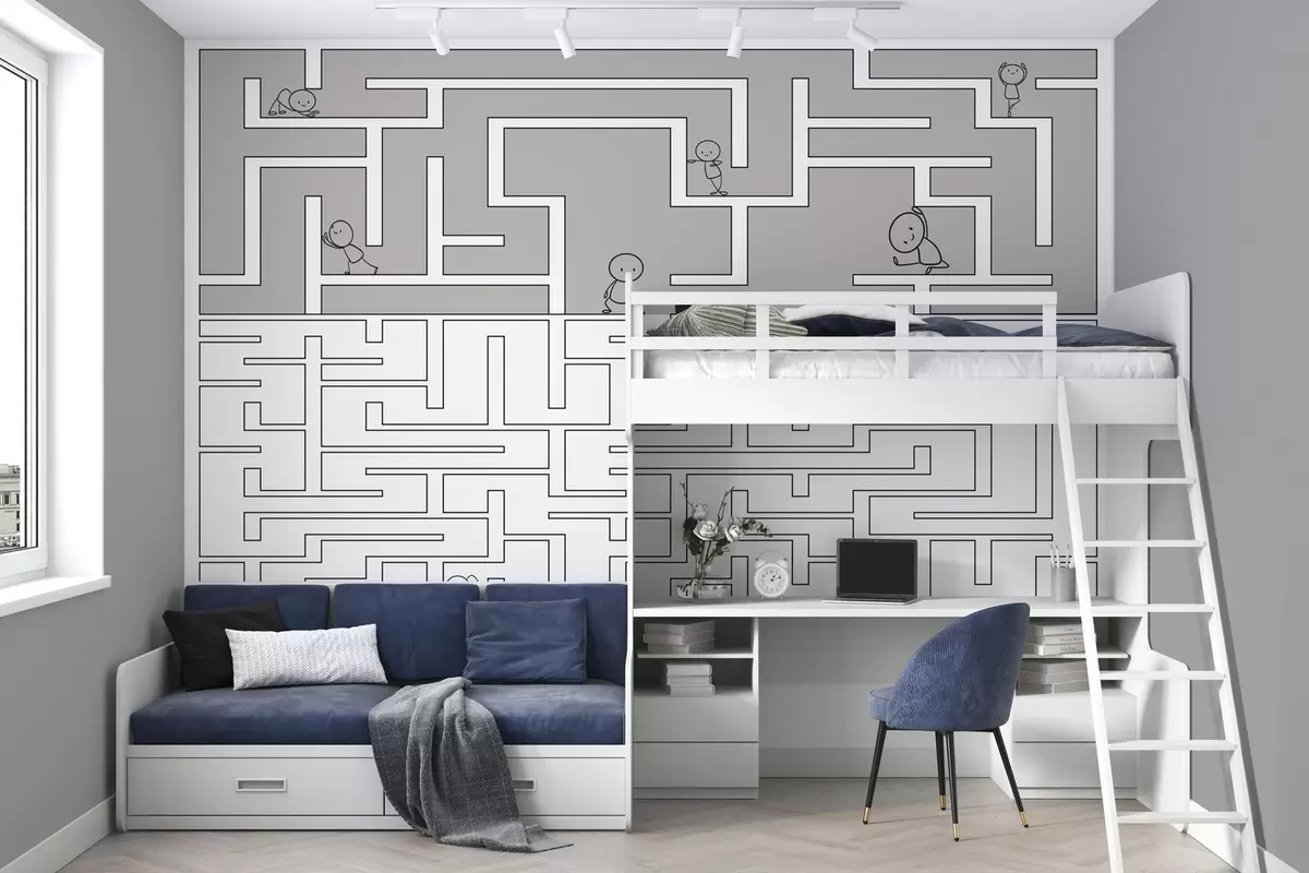 Fototapet Labyrint i grått och vitt Nr. w03873v1