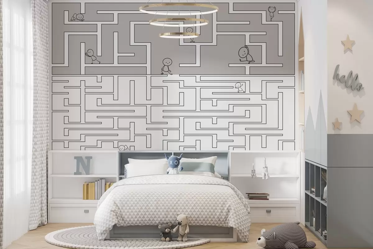 Fototapet Labyrint i ljusgrått och vitt Nr. w03873v5