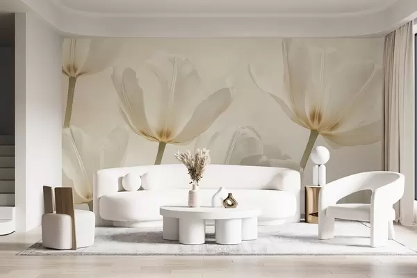 Fototapet Vackra tulpaner, blommiga, beige färger, realism w03877