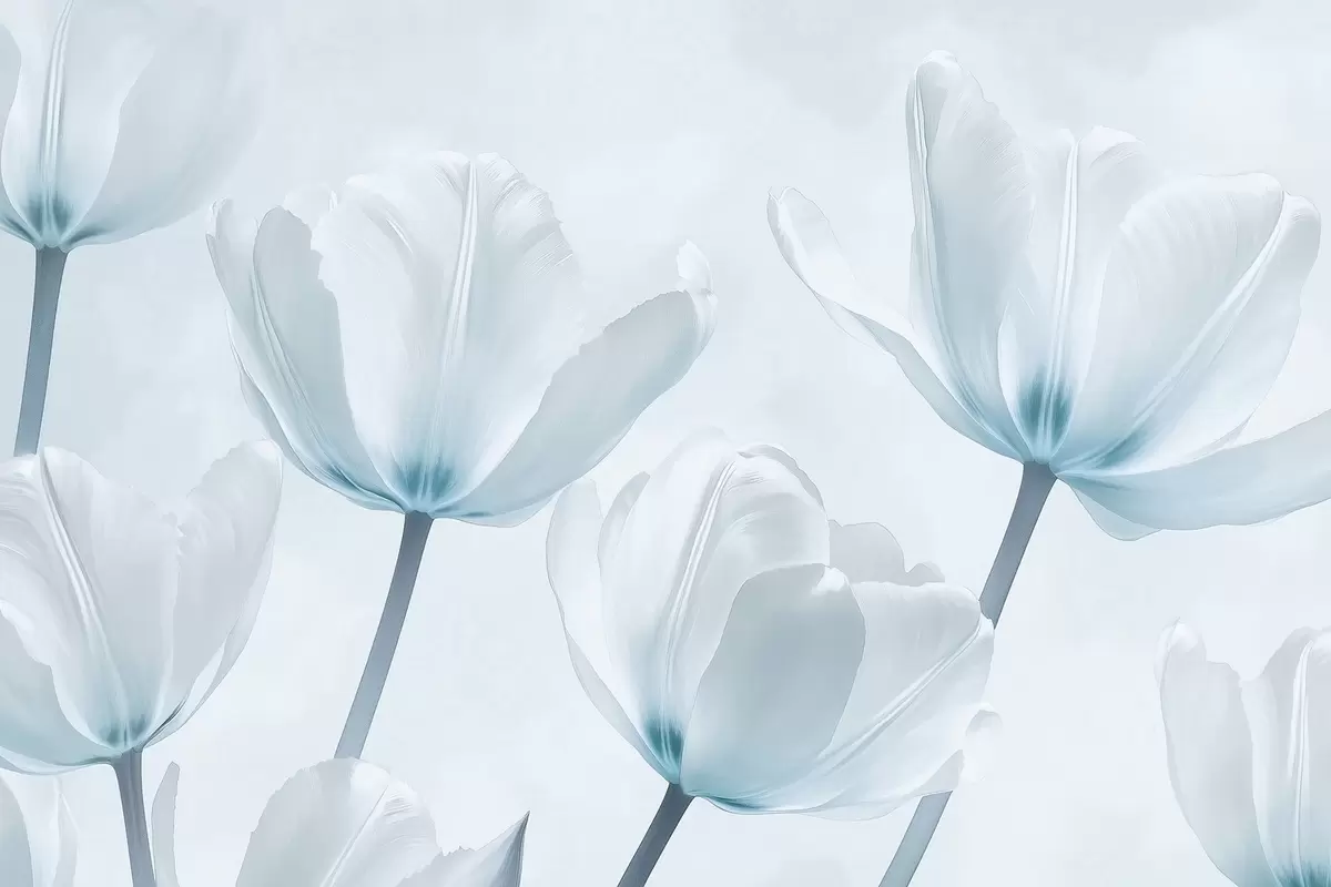 Fototapet Vackra tulpaner, blommiga, blå färger, realism Nr. w03877v1