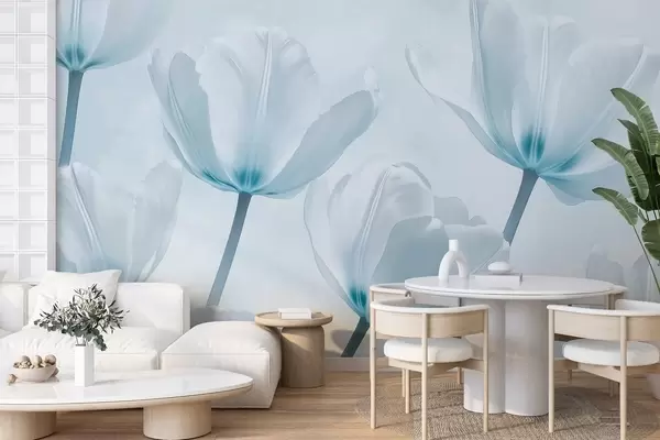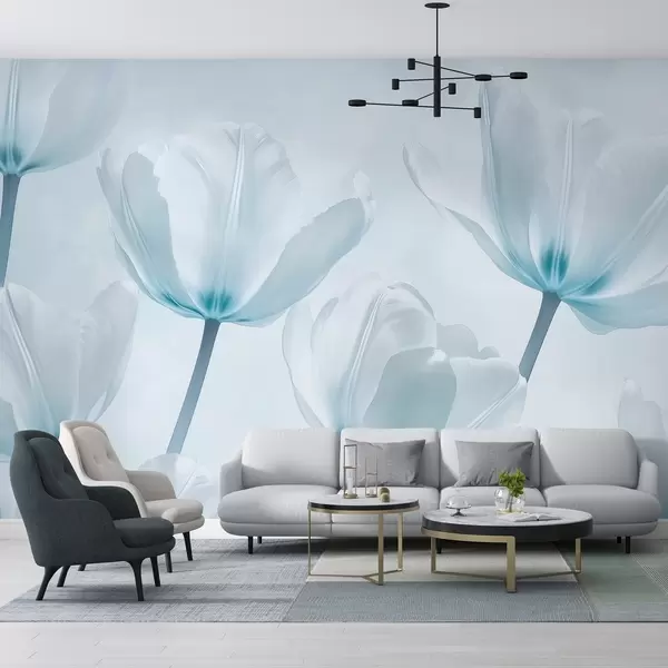 Fototapet Vackra tulpaner, blommiga, blå färger, realism Nr. w03877v1