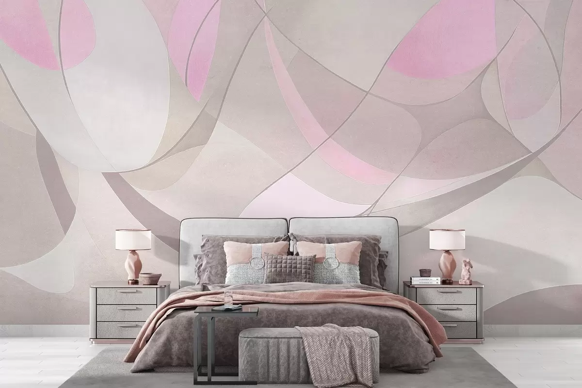 Fototapet Geometrisk abstraktion, dämpade rosa och beige färger w03878v1