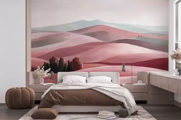 Fototapet Landskap med träd, Toscana, rosa färger, oljestil Nr. w03880v2