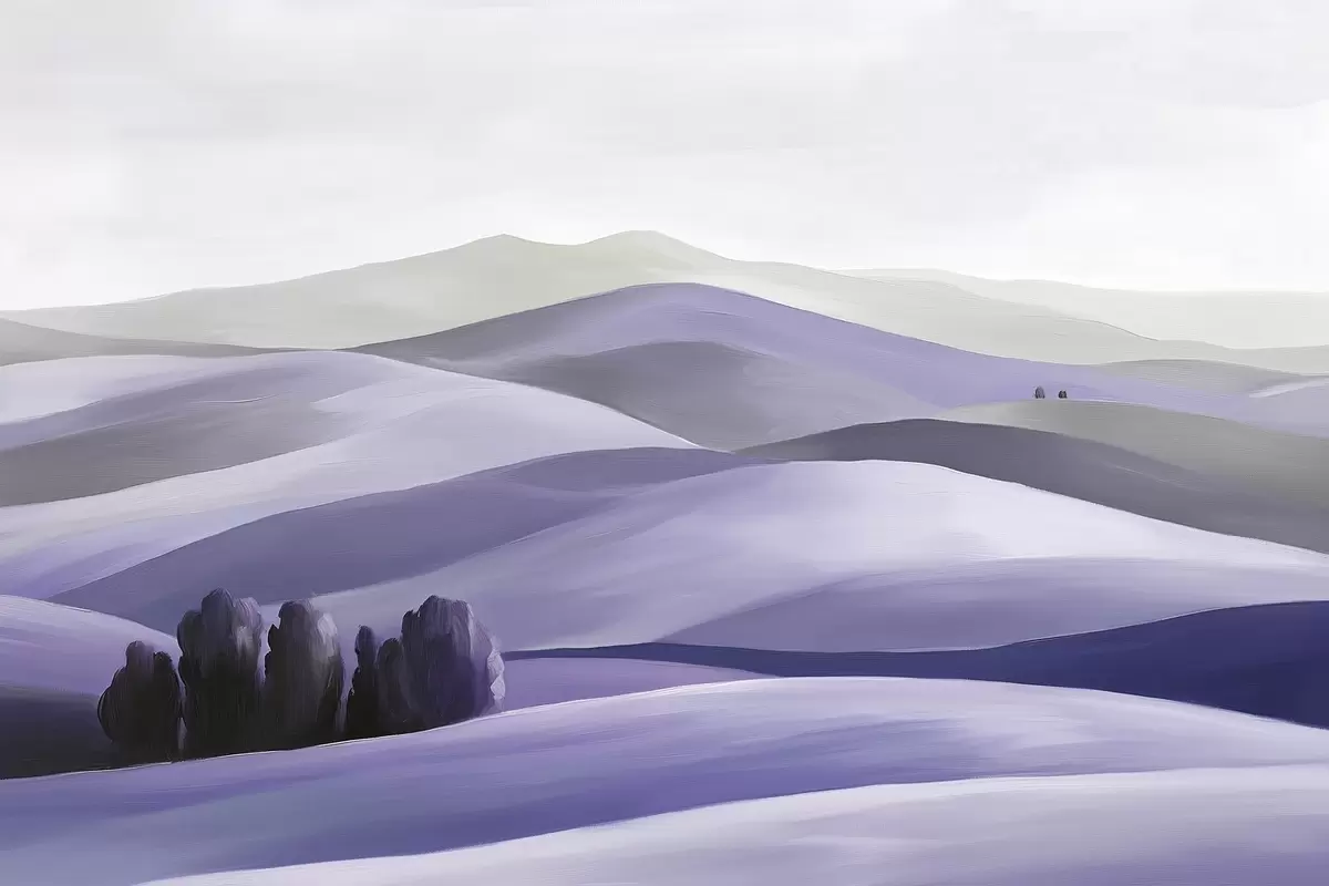 Fototapet Landskap med träd, Toscana, lila färger, oljestil Nr. w03880v3