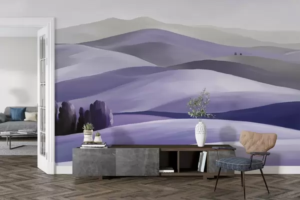 Fototapet Landskap med träd, Toscana, lila färger, oljestil Nr. w03880v3