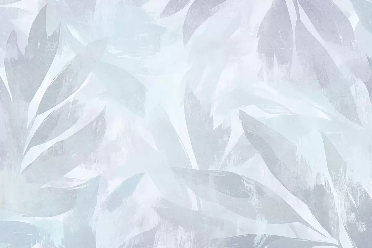 Fototapet Tropiska blad, blommor, palmer, pastellfärgad stil, blå färger Nr. w03881v2