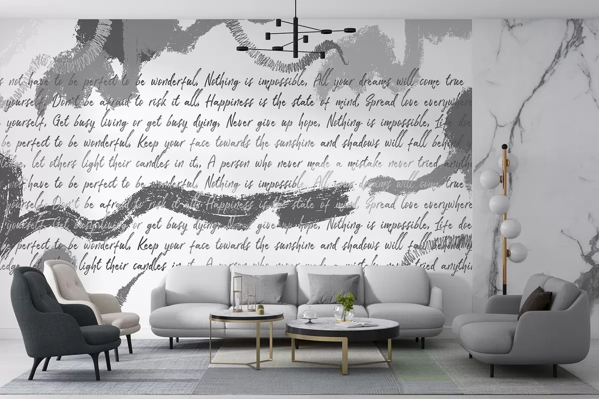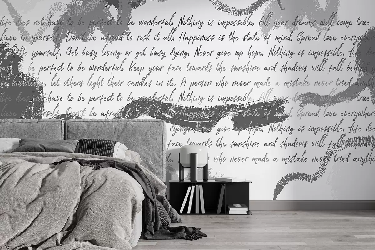 Fototapet Design med inspirerande citat, abstraktion, grå färger Nr. w03909v4