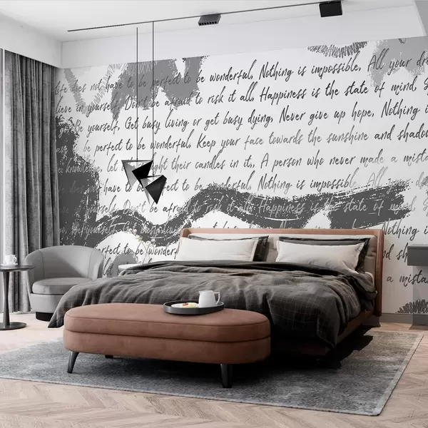 Fototapet Design med inspirerande citat, abstraktion, grå färger Nr. w03909v4
