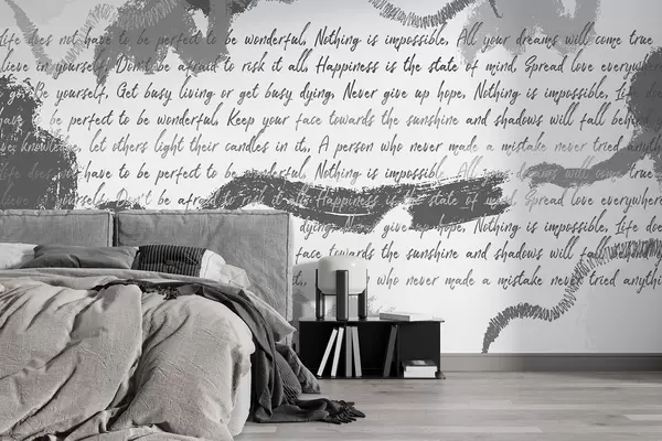 Fototapet Design med inspirerande citat, abstraktion, grå färger w03909v4