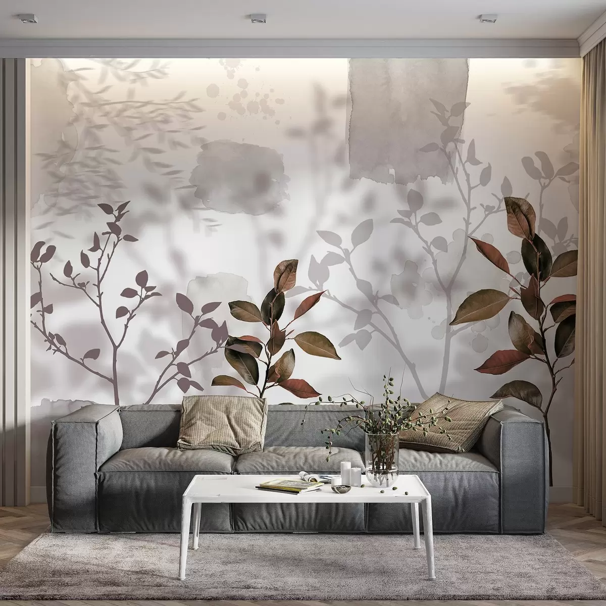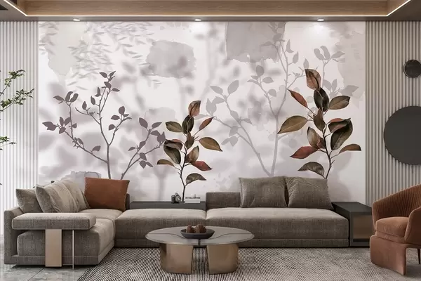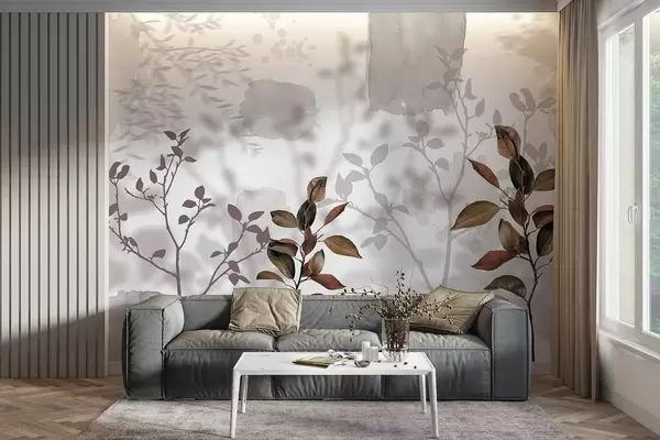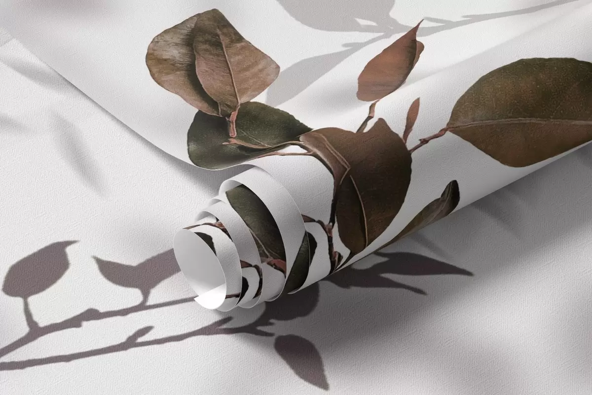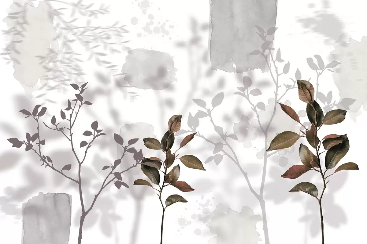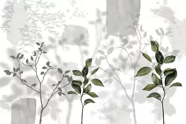 Fototapet Citronträdets blad, trädgrenarnas skuggor, natur, akvarell Nr. w03910