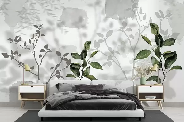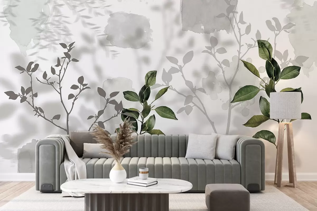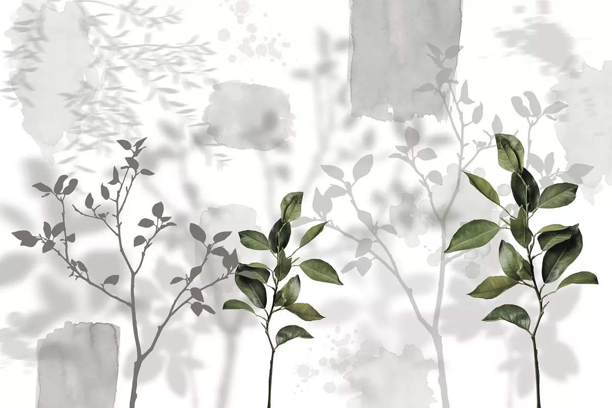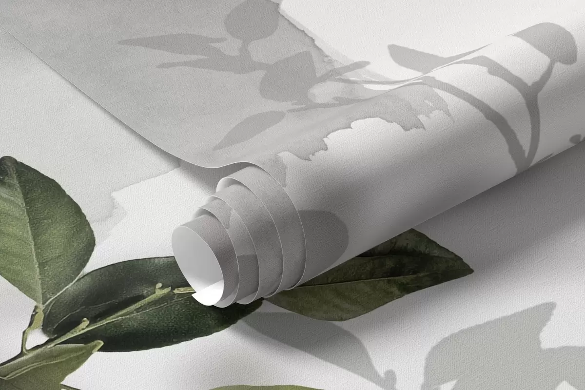 Fototapet Citronträdblad, trädgrenar skuggor, natur, akvarell, grön w03910v1