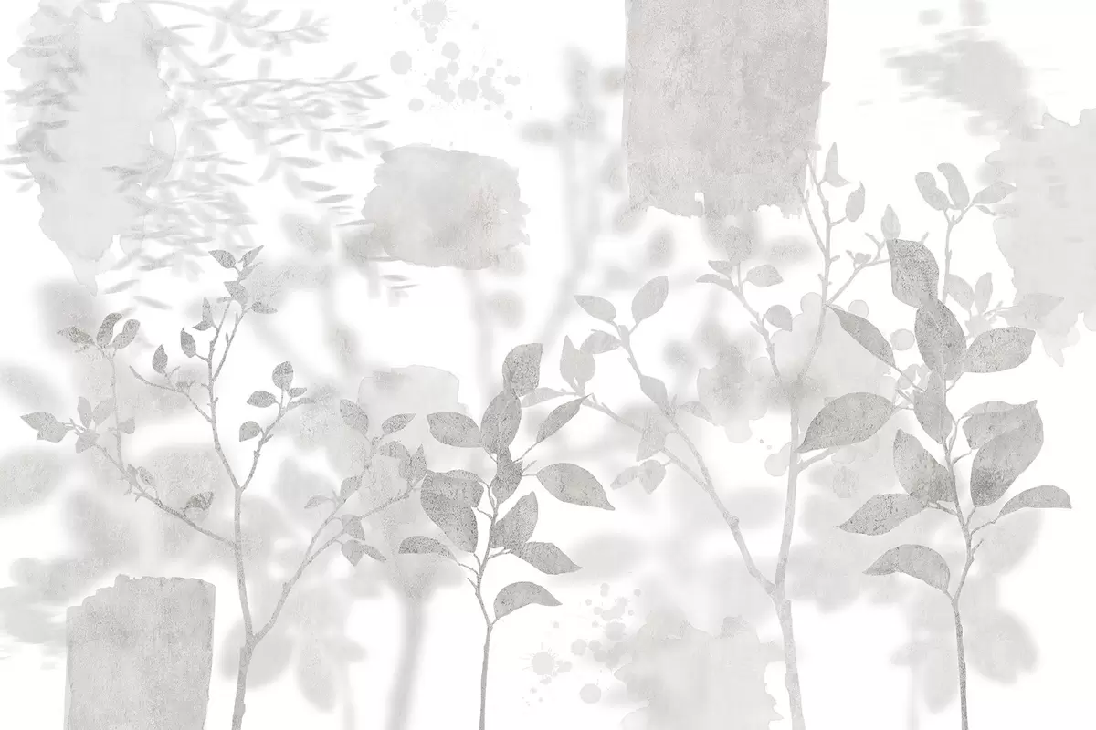 Fototapet Trädsilhuetter, grenar, natur, akvarell, grå färger Nr. w03911