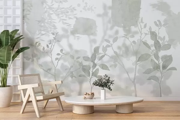 Fototapet Träd silhuetter, grenar, natur, akvarell, gröna färger Nr. w03911v1