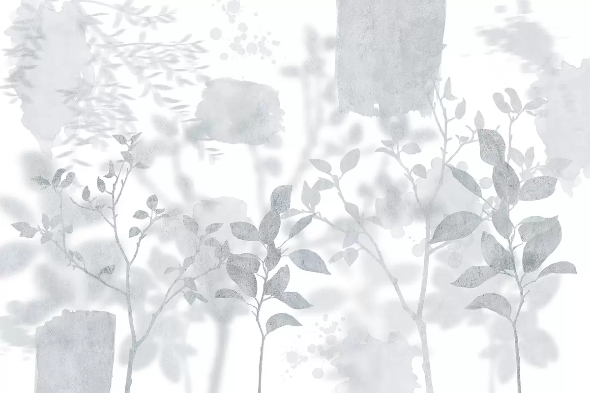Fototapet Trädsilhuetter, grenar, natur, akvarell, blå färger w03911v2