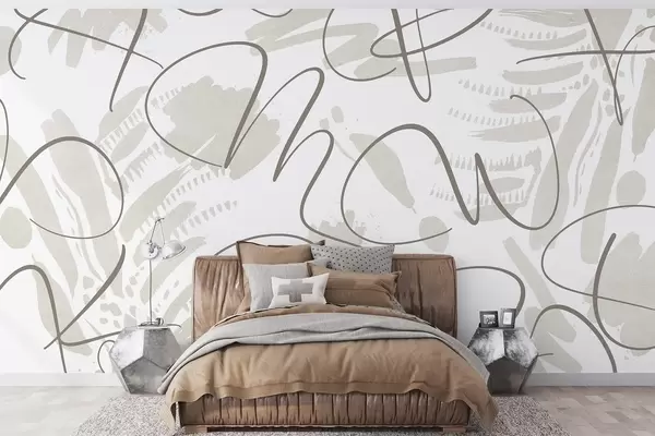 Fototapet Kalligrafisk abstraktion med bokstäver, penseldrag, beige färg Nr. w03913