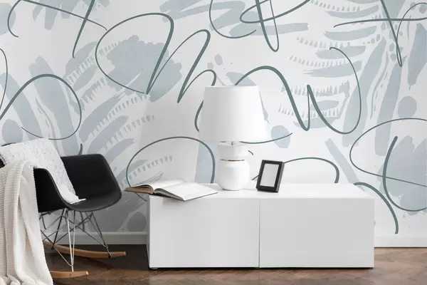 Fototapet Kalligrafisk abstraktion med bokstäver, penseldrag, blå färg Nr. w03913v1