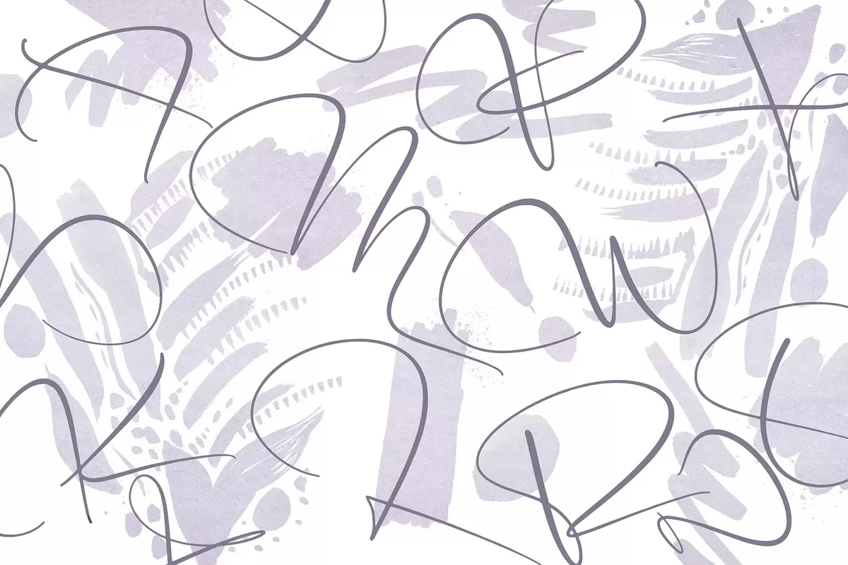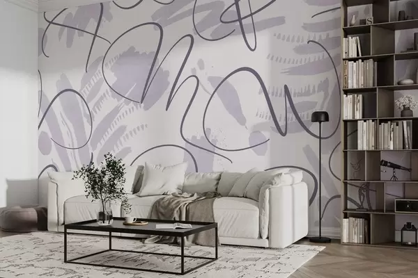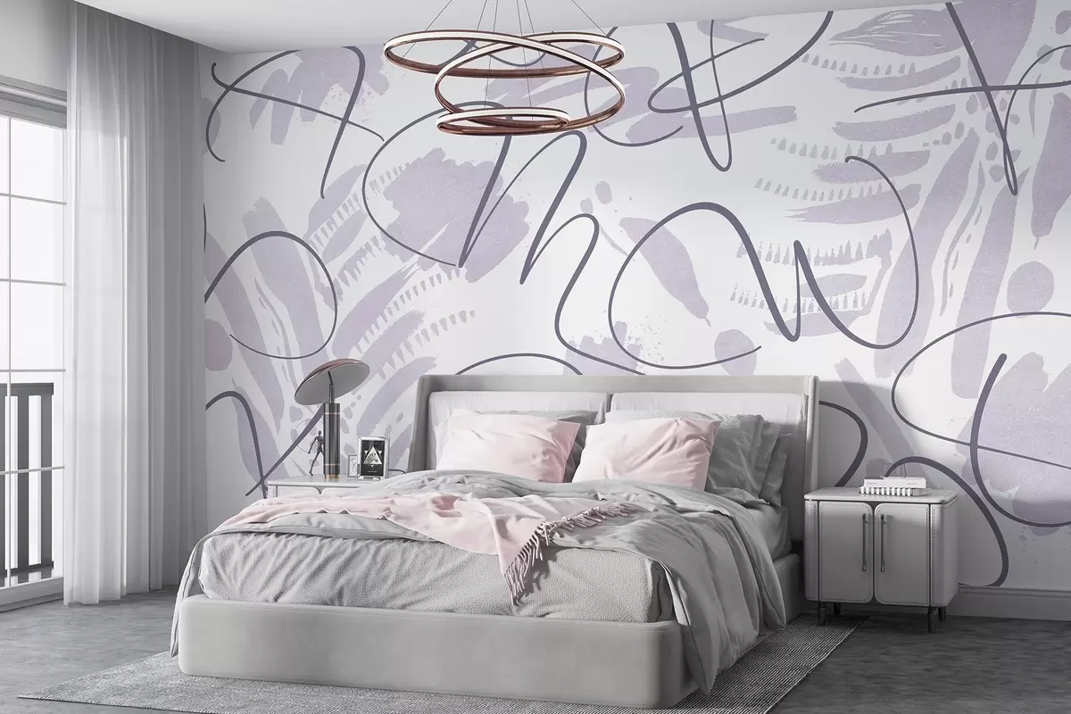 Fototapet Kalligrafisk abstraktion med bokstäver, penseldrag, lila färg Nr. w03913v2