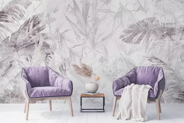 Fototapet Blommig abstraktion i grungestil med imitation av nötning, nyanser av lila Nr. w03926v1