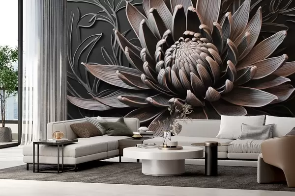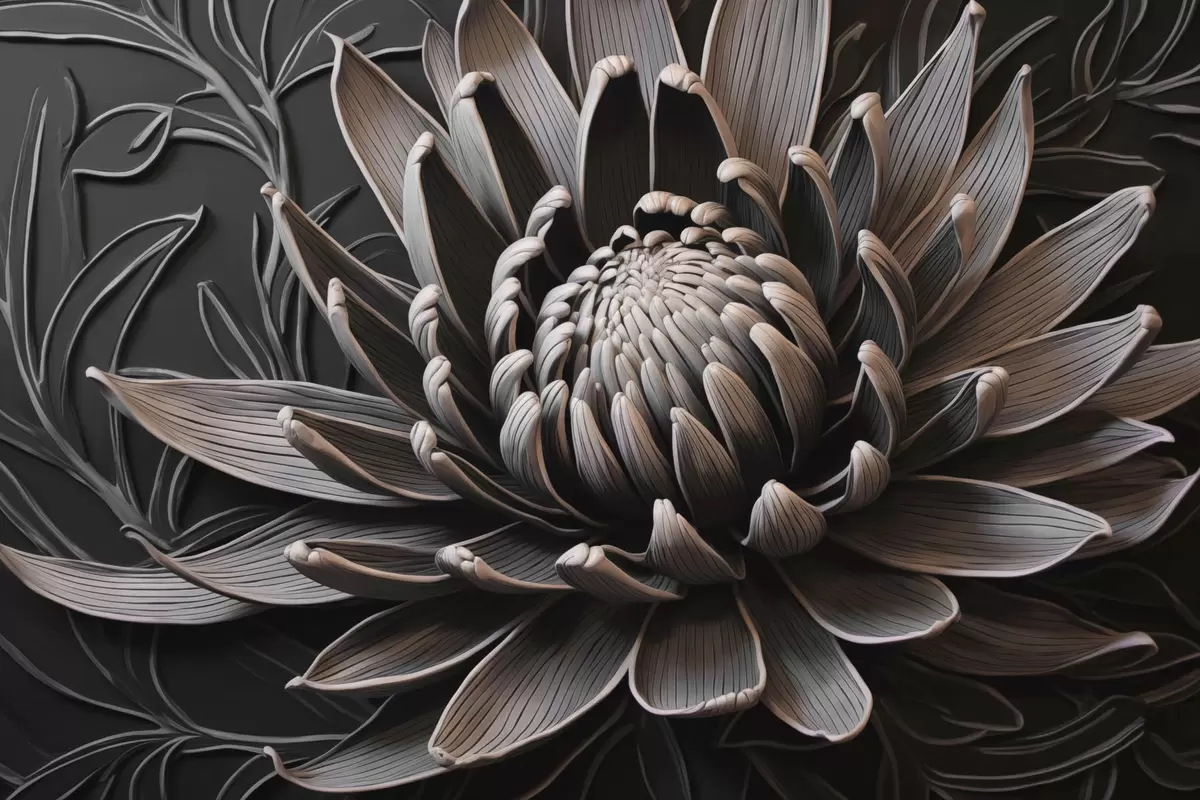 Fototapet Proteablomma, beige och svart Nr. w03930