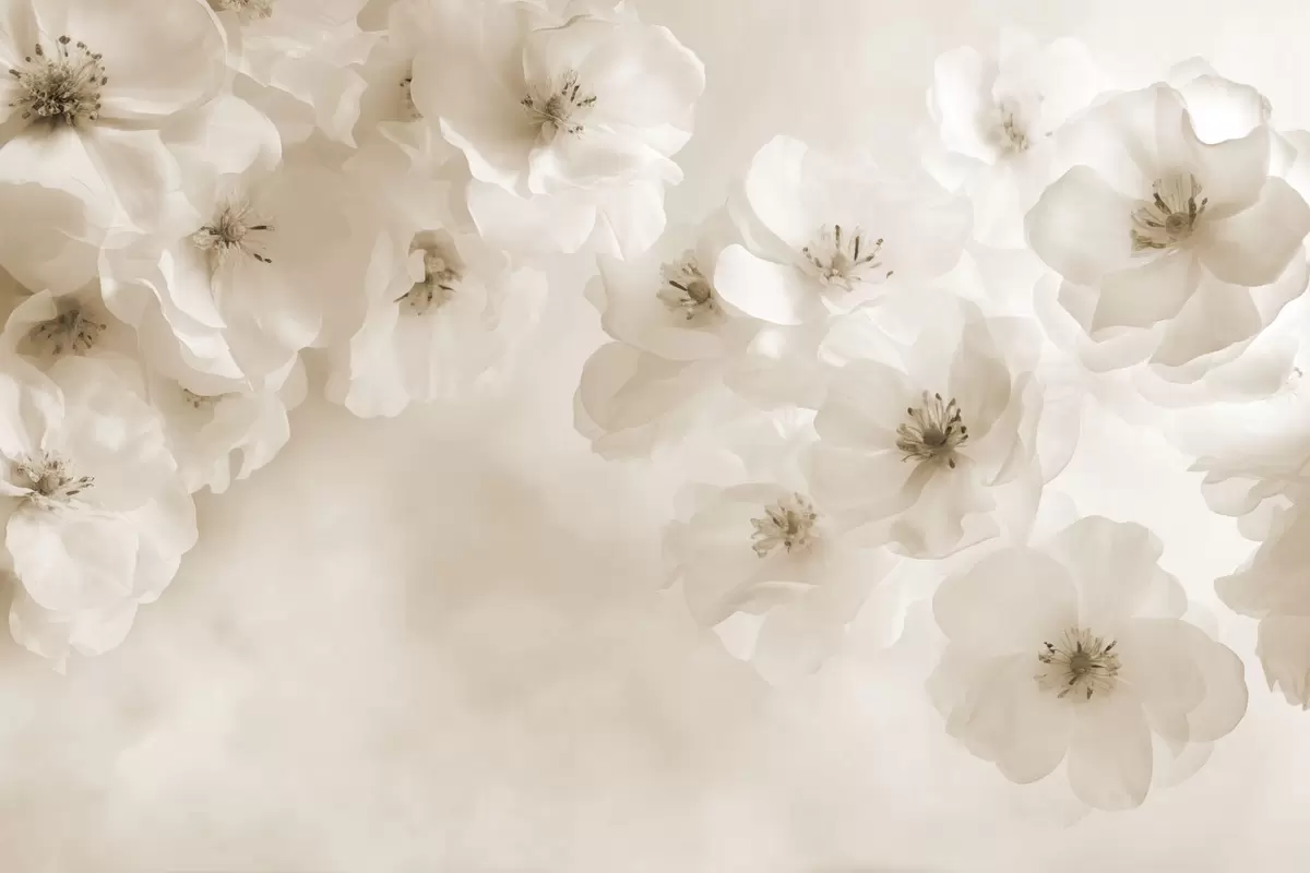 Fototapet Delikata stora blommor, nyanser av beige Nr. w03931v2