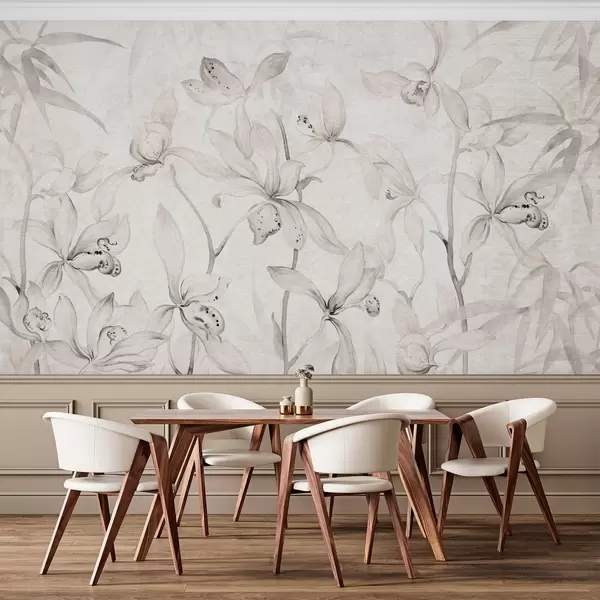 Fototapet Vilda orkidéer, nyanser av beige Nr. w03933v1