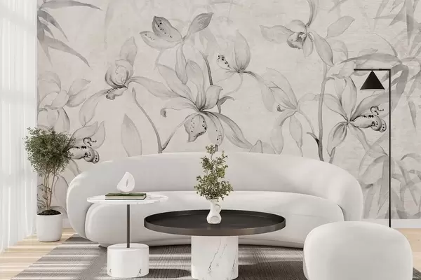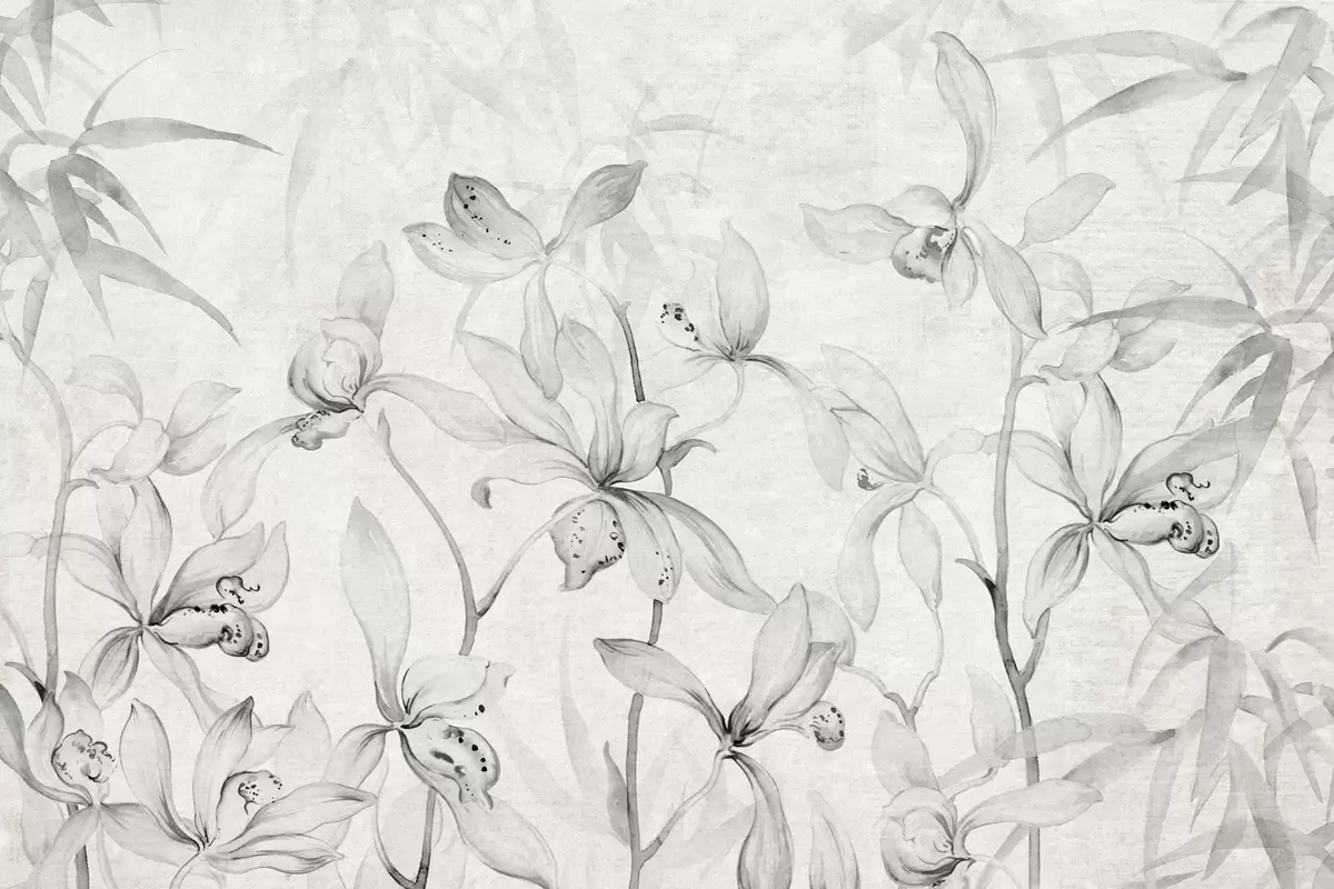 Fototapet Vilda orkidéer, monokroma nyanser Nr. w03933v2