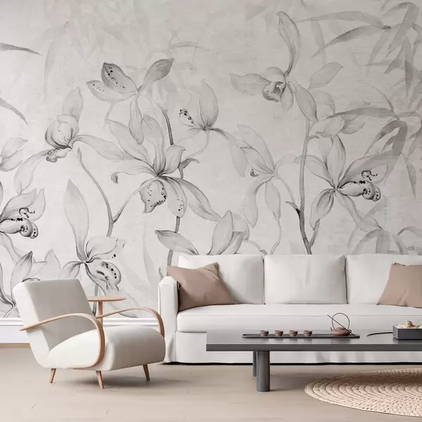 Fototapet Vilda orkidéer, monokroma nyanser Nr. w03933v2