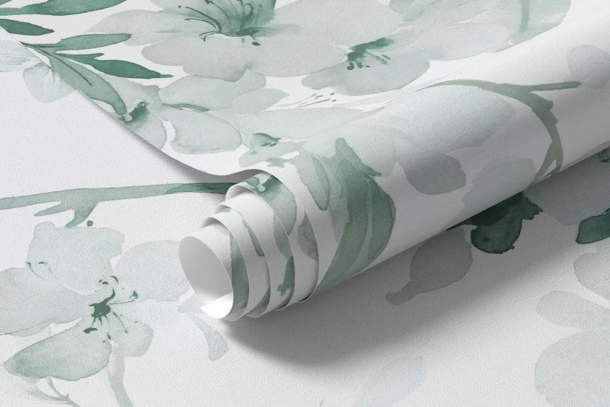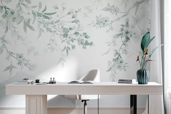 Fototapet Blommande grenar, imitation av akvarell, gröna nyanser Nr. w03935v3