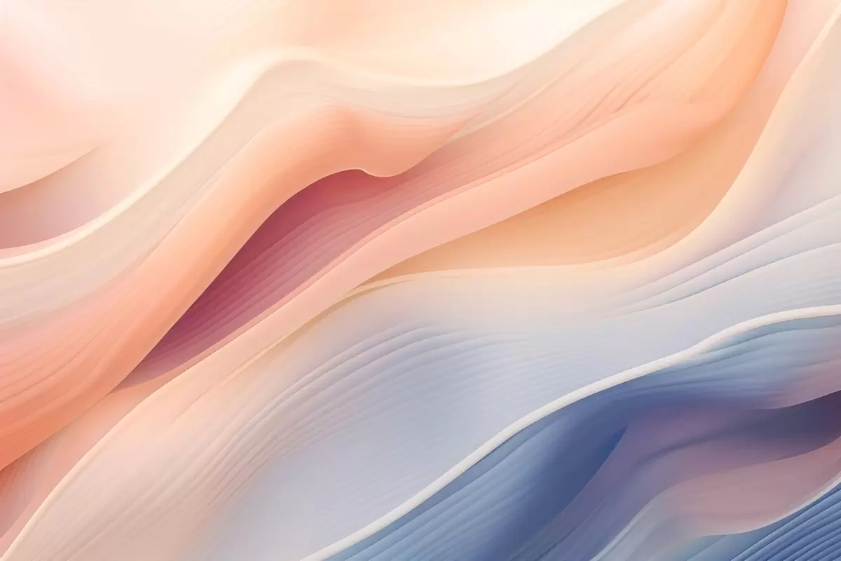 Fototapet abstrakta flödande former inspirerade av vind och vatten, handmålade med mjuka pastellfärger och subtil textur, organisk rörelse som silke i slow motion, blek elfenbensfärgad bakgrund, naturlig harmoni, inga föremål, inga symboler, modern poetisk tapetkomposition Nr. w03942