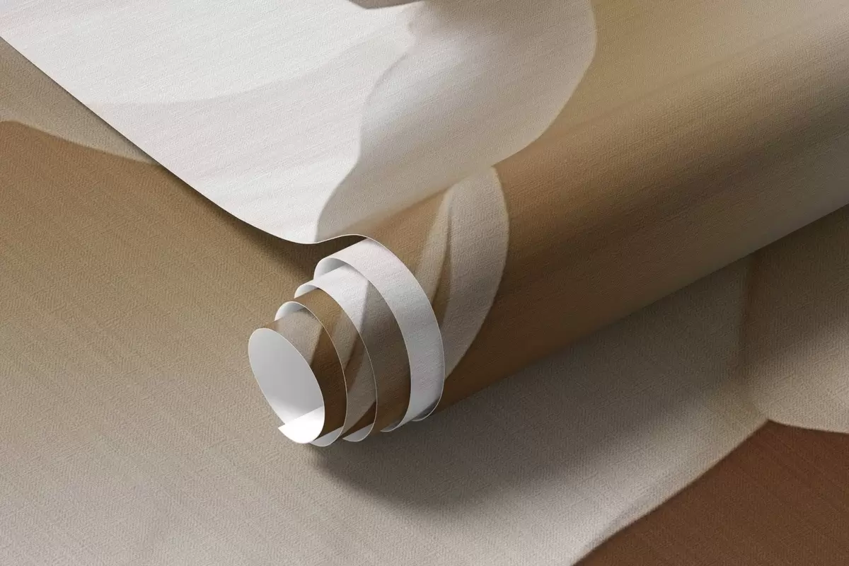 Fototapet Volymetrisk blomkomposition med delikata pappersliknande eller textilinspirerade kronblad i elfenben, vanilj och rodnad, mot en varm beige duk. Nr. w03945