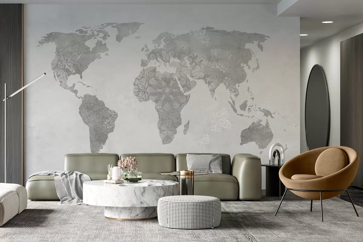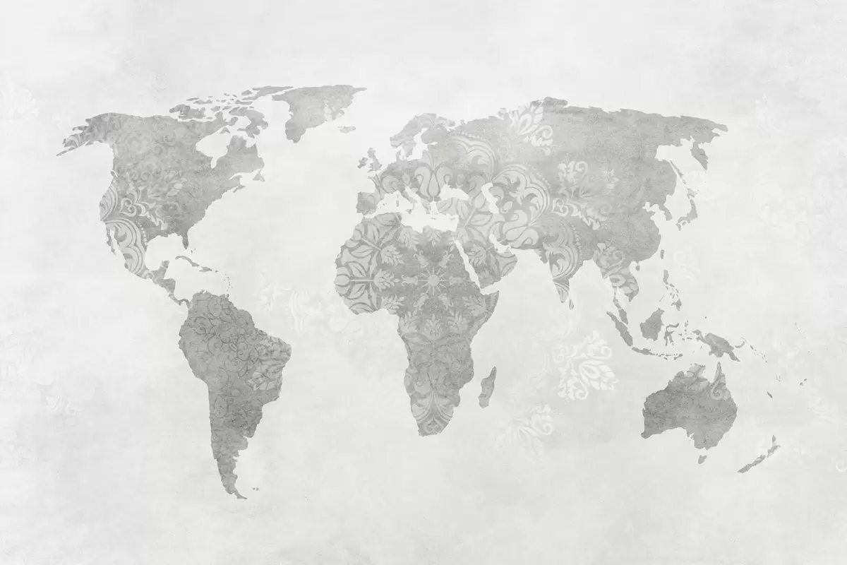 Fototapet Världskarta med mönster, monokroma nyanser Nr. w03954v1