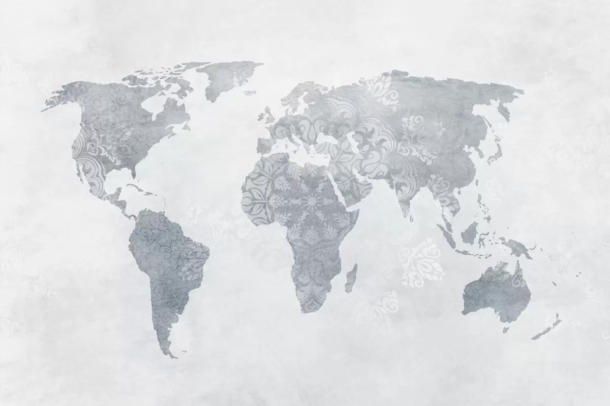 Fototapet Världskarta med mönster, blå nyanser Nr. w03954v2