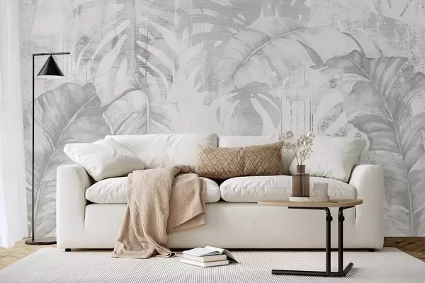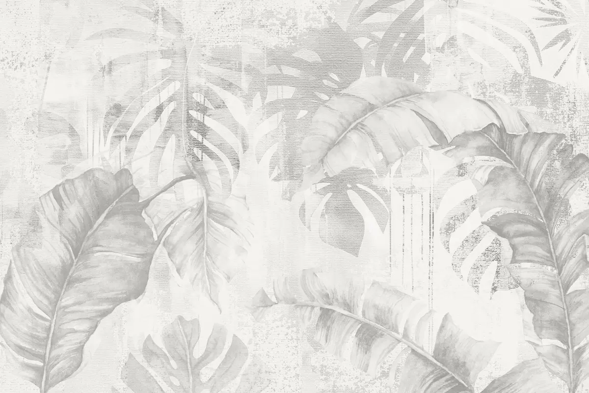 Fototapet Tropiska blad i grungestil, monokroma nyanser Nr. w03956v1