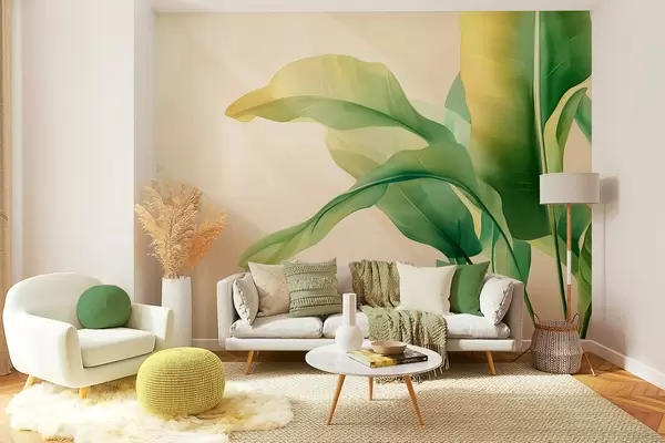 Fototapet stora gröna tropiska blad på sidan Nr. w03959
