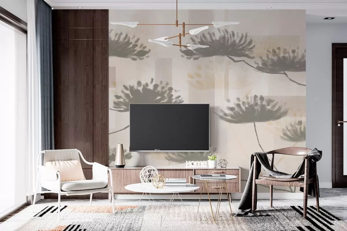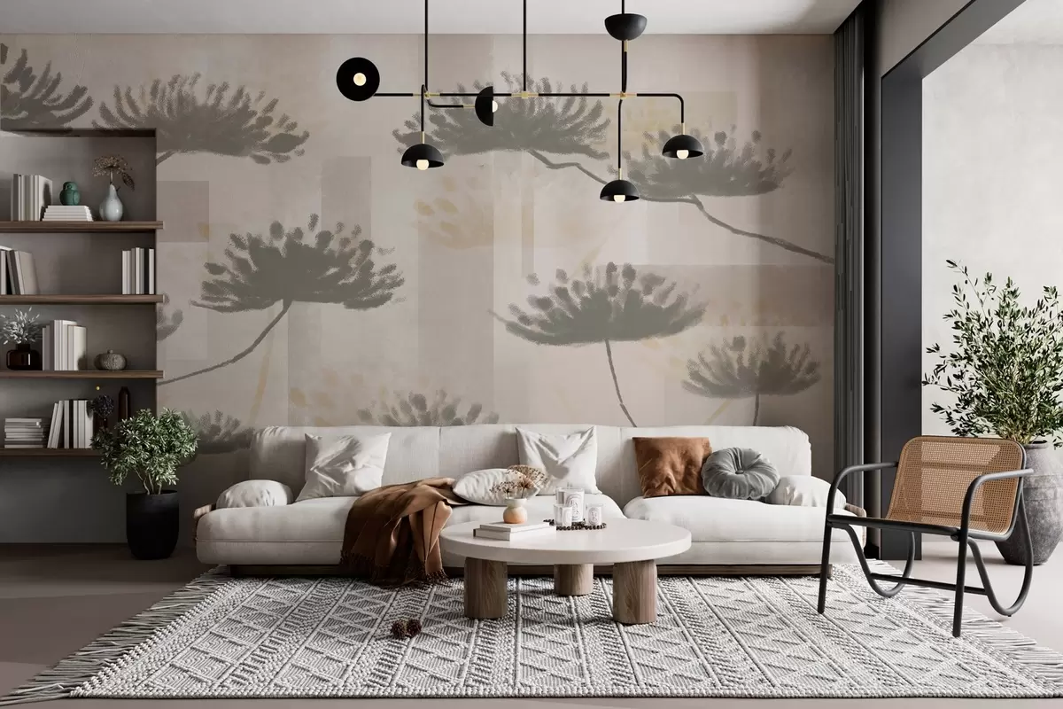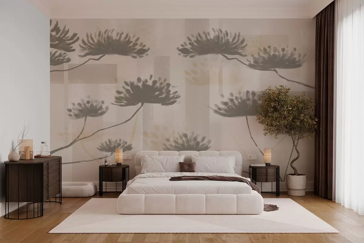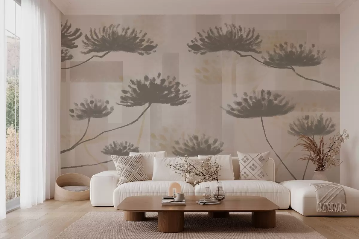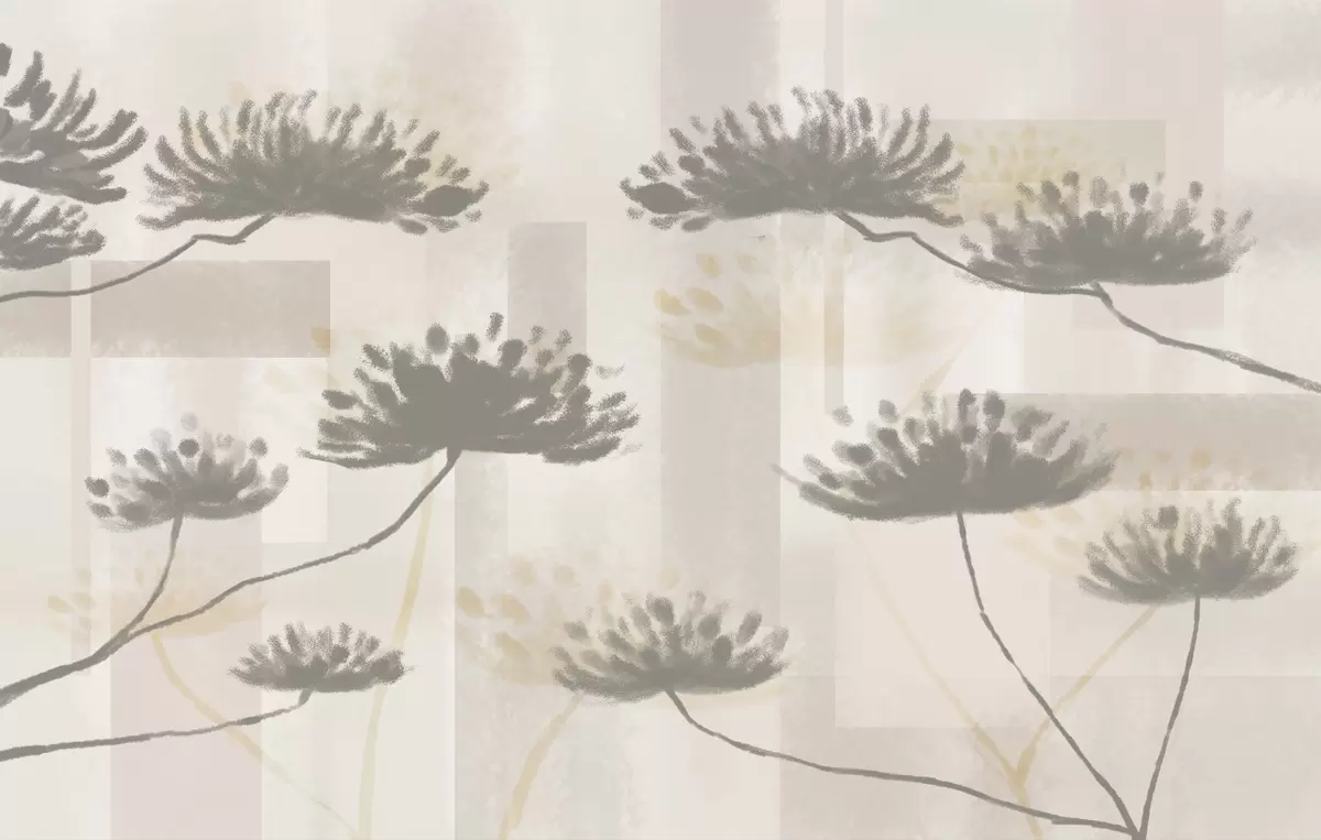 Fototapet strukturerad geometri i beige och gräddfärgade toner med stiliserade paraplyblommor Nr. w03960