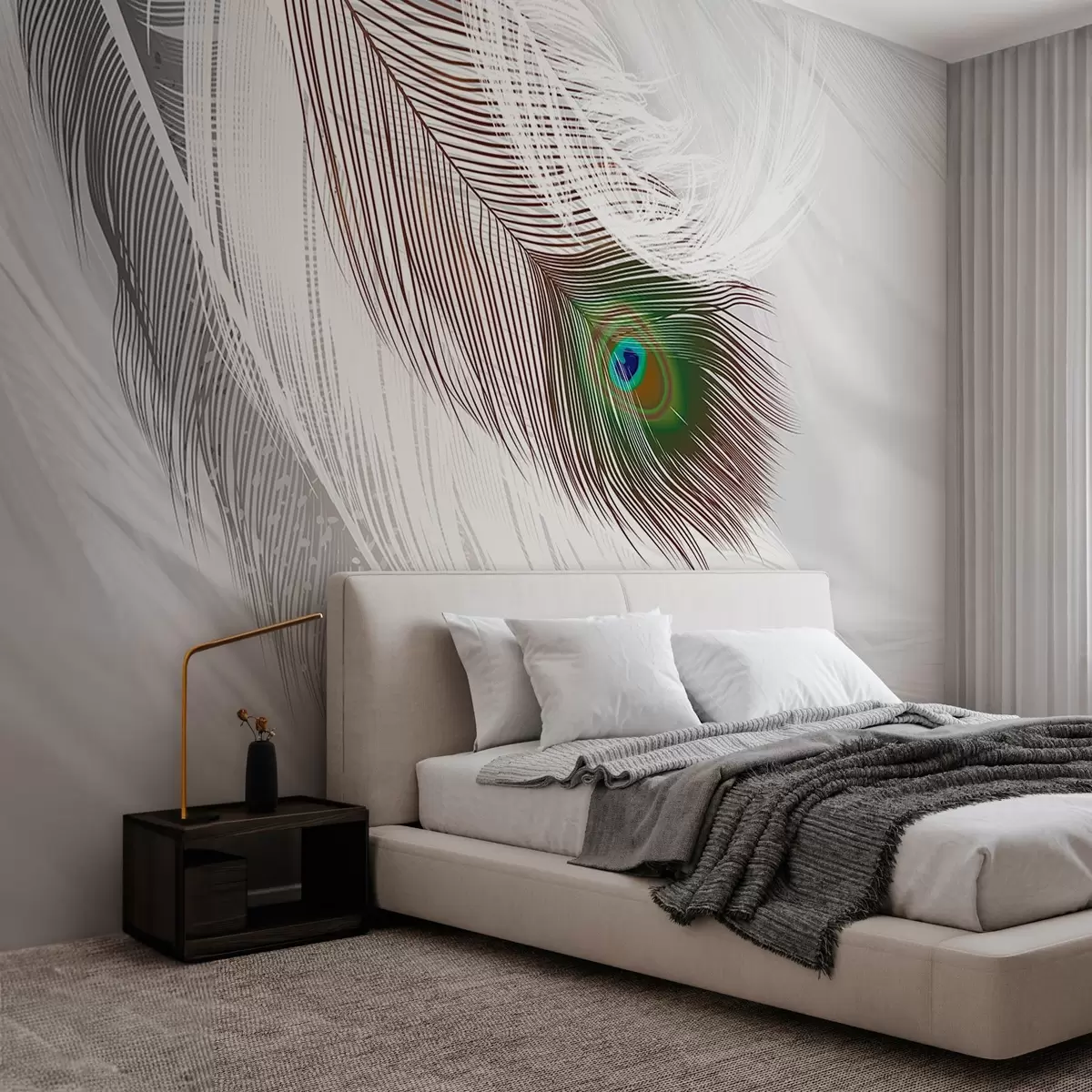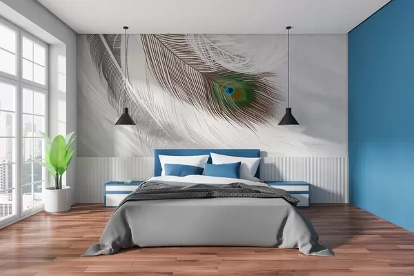 Fototapet en stor påfågelfjäder bland fjädrarna Nr. w03961