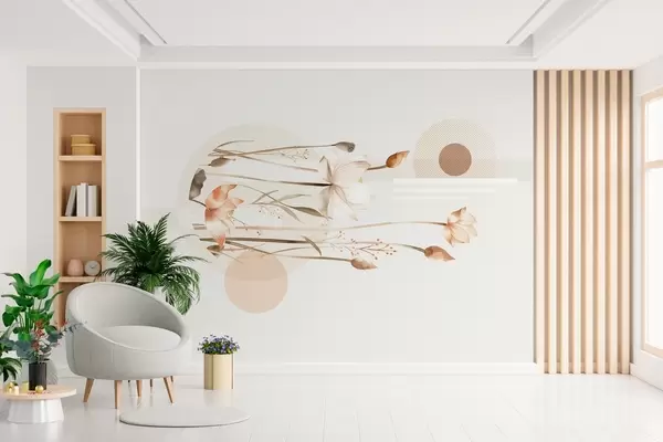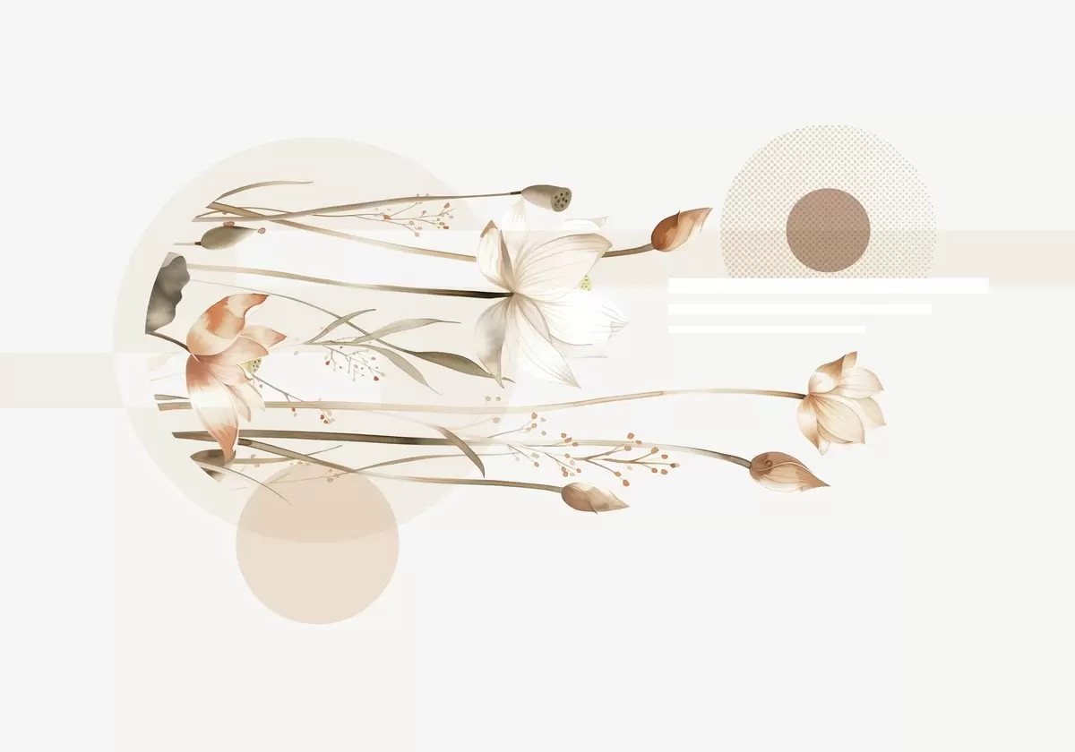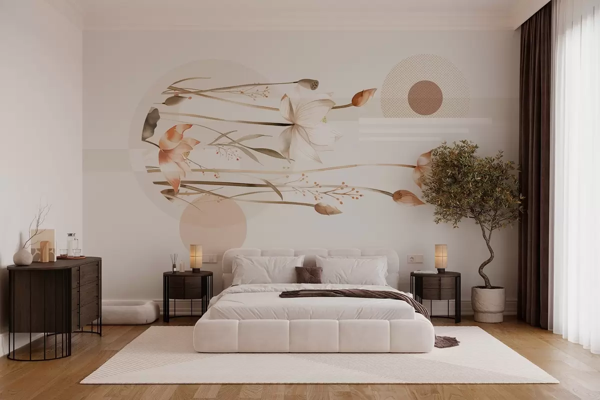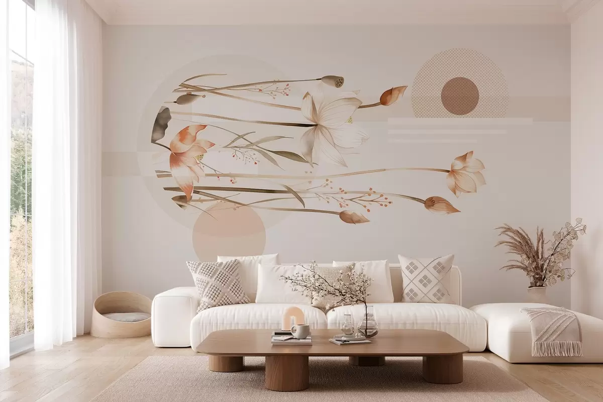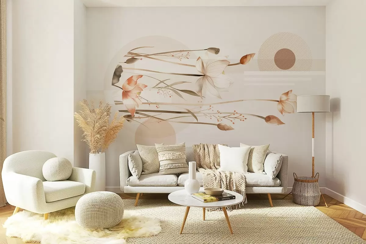 Fototapet pastellfärgade liljor och bohogeometri Nr. w03964