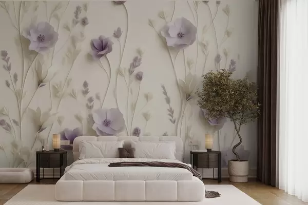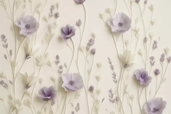 Fototapet Fina lila blommor på en krämfärgad bakgrund Nr. w03993