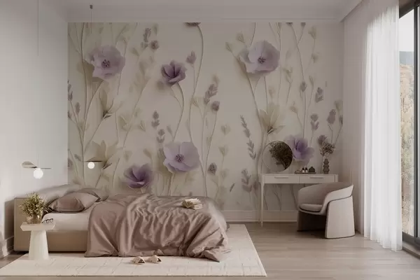 Fototapet Fina lila blommor på en krämfärgad bakgrund w03993
