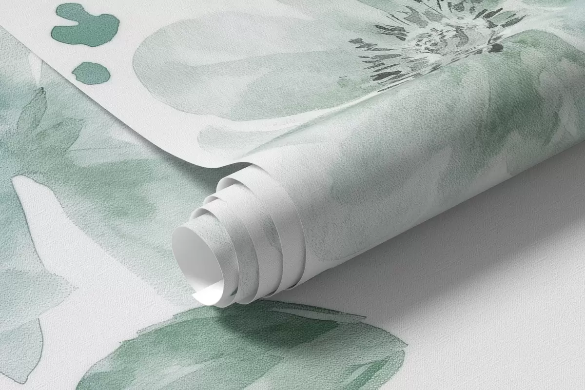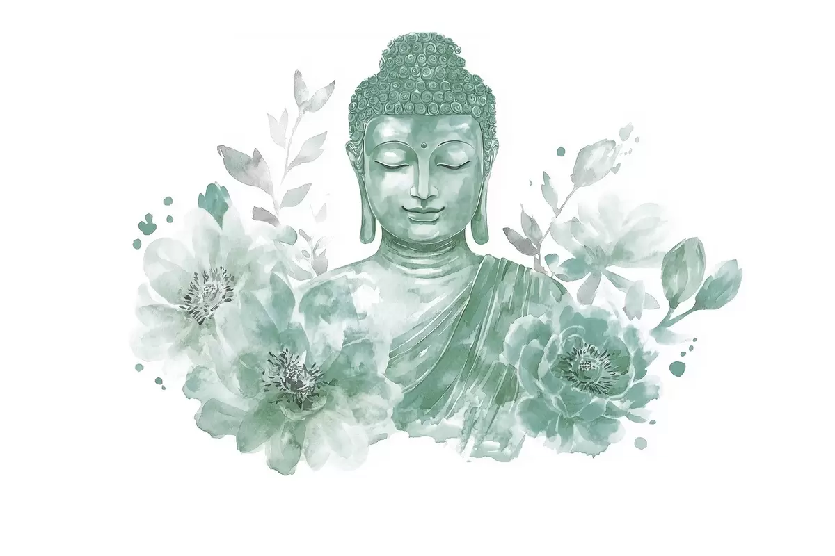 Fototapet Akvarell Buddha med blommor, andlig, grön färgpalett Nr. w04005v3